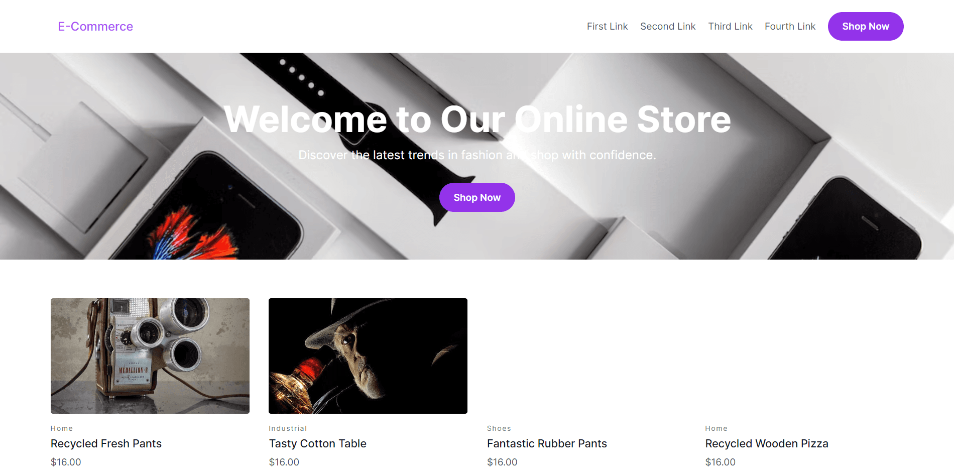 Ecommerce website for selling products, showcasing products and attracting customers with a modern UI.