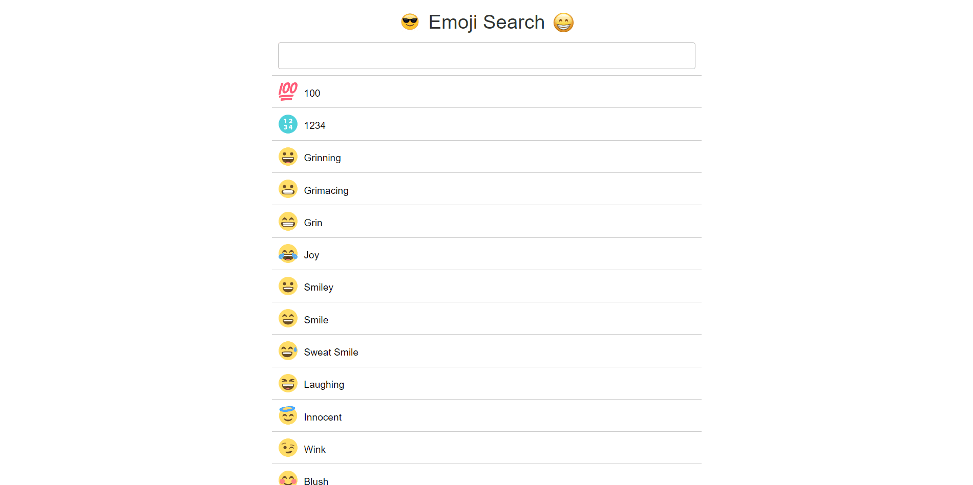Interactive directory showcasing a wide range of emojis, built with React for easy search and browsing.
